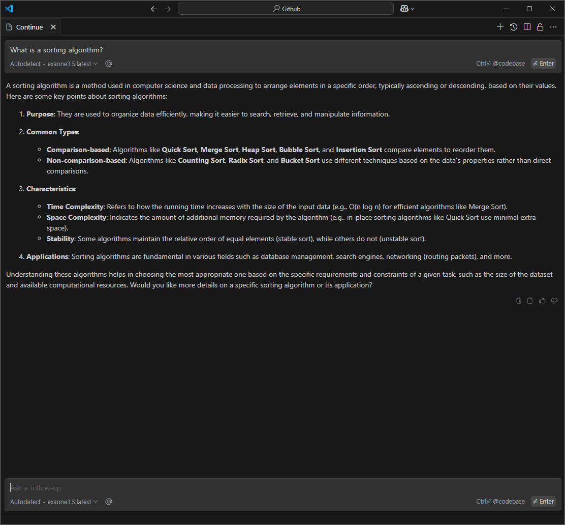 - 실행 후 프롬프트가 나타나면 질문이나 명령어를 입력하여 AI와 상호작용할 수 있습니다.